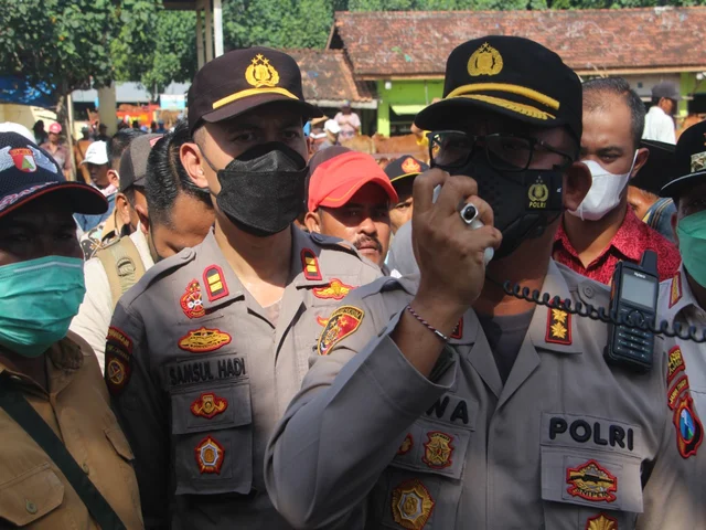 Lumajang, POJOKSEMERU.COM – Kapolres Lumajang AKBP Dewa Putu Eka D, S.I.K M.H bersama sejumlah stakeholder diantaranya Dinas Peternakan, Dinas Pertanian berikut anggota TNI, melakukan pengecekan sapi di pasar hewan / patok di Lumajang, Jum’at (13/5/2022).